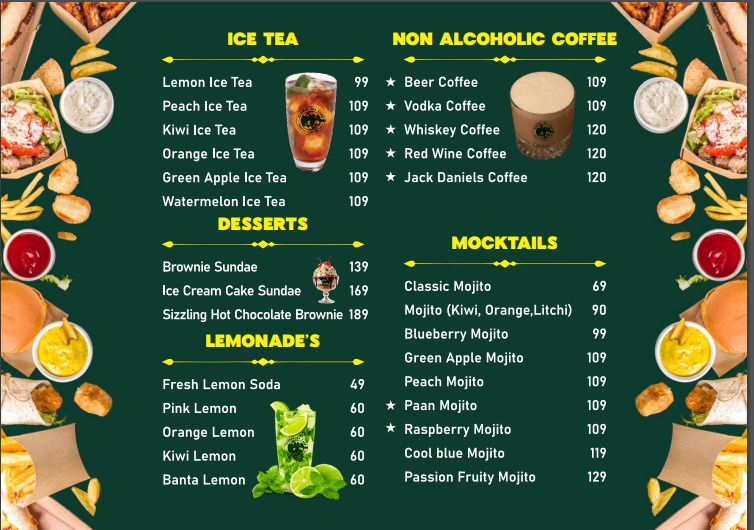 Gtc Crispy veg burger +GTC veggies Maggi +masala Fries+spring roll+mojito